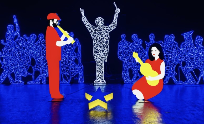 Lodola spiega di aver concepito l’installazione a partire da una riflessione sulla “condizione di sofferenza che viviamo oggi”. Questa, dice, “è stata l’ispirazione da cui sono partito per rappresentare una rinascita luminosa, un senso di speranza, la fiducia in un cambiamento. Come le figurine del presepe, noi siamo la manovalanza di un tempo sospeso, orchestrali senza pubblico, teatro senza copione, ribalta in attesa della sua star. Il collegamento con il Festival di Sanremo ha aggiunto un sapore pop, con i personaggi familiari che sono passati negli anni su quel palcoscenico. La grande stella cometa, conosciuta anche come ‘stella delle genti’, l’ho pensata appunto come un mare di facce in cui ognuno può immaginare la propria”.