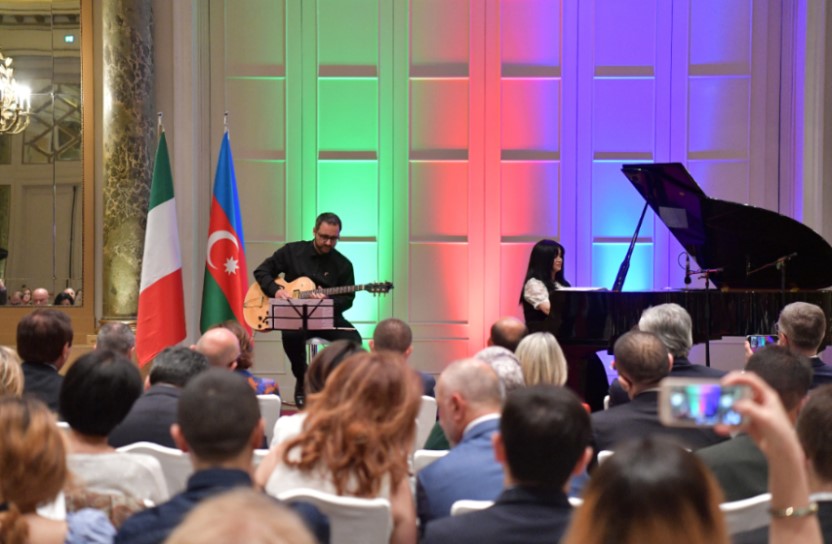 L’amicizia tra Italia e Azerbaigian è stata simbolicamente rappresentata dalla coppia di artisti che si è esibita nel concerto “Note di Amicizia“: la compositrice e pianista azerbaigiana Kamalia Ali-zadeh, e il compositore e chitarrista italiano Stefano Muscaritolo. La coppia, unita nella vita oltre che sul palcoscenico, ha alternato a brani del patrimonio musicale azerbaigiano, omaggi dedicati all’Italia.