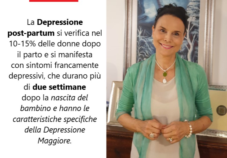 La Depressione post-partum si verifica nel 10-15% delle donne dopo il parto e si manifesta con sintomi francamente depressivi, che durano più di due settimane dopo la nascita del bambino e hanno le caratteristiche specifiche della Depressione Maggiore.