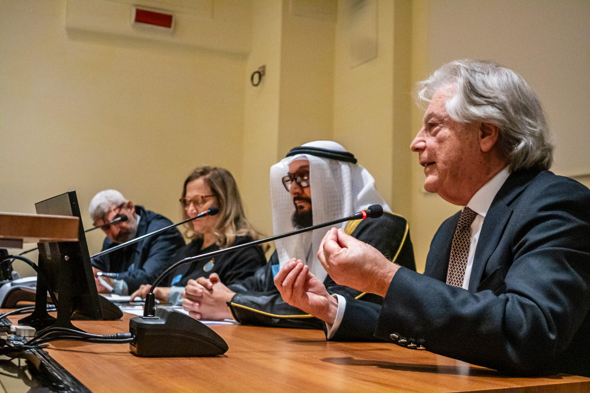 S.E. il dottor Abdul Aziz Sarhan, direttore della Lega musulmana mondiale Italia, ha enfatizzato l’importanza di aprire le porte all’amore e alla dignità, sottolineando la necessità di trattare le persone con rispetto e accoglienza, così come accogliamo gli animali domestici in casa, li curiamo e li accudiamo. E il nostro vicino, che tende la mano verso di noi, anche egli ha bisogno delle nostre cure e dei nostri sacrifici. Dobbiamo dare dignità ai nostri fratelli poveri e trattare tutti gli esseri umani con misericordia. Solo con il bene si conquistano i cuori. L’imam Nader Akkad, ha richiamato le parole di Papa Francesco contro le guerre e l’indifferenza, citando anche il Corano e l’importanza di salvare vite: “Papa Francesco ricordando l’orrore dei morti della ‘guerra inutile’, così definita la prima Guerra Mondiale, ha detto mai più guerre e mai più indifferenza. Le guerre sono le madri di tutti i peccati”. Le guerre portano con sé una vasta gamma di impatti negativi, tra cui la perdita di vite umane è la più atroce; ma anche la distruzione di comunità, la dislocazione forzata di popolazioni, il trauma psicologico e l’instabilità socioeconomica. Rimanere indifferenti alle guerre significa negare la nostra umanità e la responsabilità che abbiamo nei confronti degli altri. Ogni conflitto rappresenta un fallimento della nostra capacità di risolvere le differenze in modo pacifico e dimostra l’incapacità di affrontare le sfide globali attraverso il dialogo e la cooperazione.