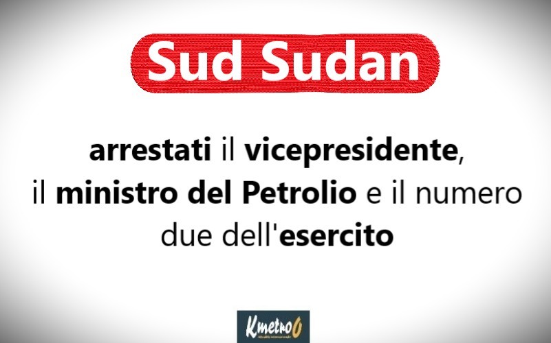 K metro 0 – Juba – Il Sud Sudan sta attraversando un momento critico, con l’arresto del vicepresidente Riek Machar e diversi suoi alleati tra i quali il ministro del Petrolio Puot Kang Chol. La cosa è accaduta dopo che un gruppo armato  fedele a Machar ha invaso una base dell’esercito nel nord del Paese.